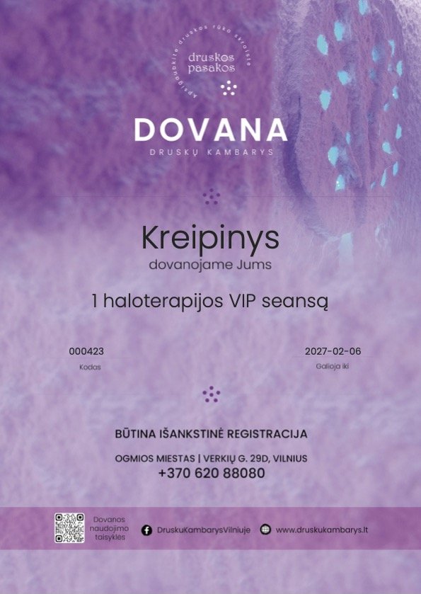 Druskų kambarys DRUSKOS PASAKOS - tai vieta, kur išnyksta laikas ir lieka tik buvimas su savimi. Čia ir dabar...